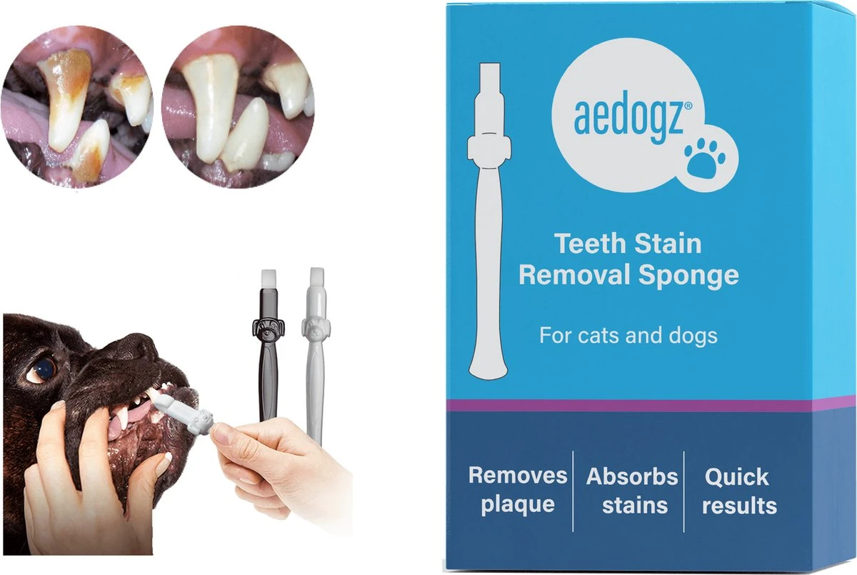 Aedogz Tandsteen Verwijder Spons Hond & Kat – Verwijdert Tandsteen, Aanslag En Vlekken – Verfrist De Adem Voorkomt Tandvleesproblemen.