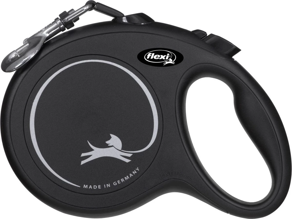 Bij Flexi kan je kiezen tussen lijnen met een koord en lijnen met tape. Het is een persoonlijke voorkeur welke variant je het fijnst vindt. In principe zijn beide soorten even sterk en veilig om te gebruiken. De New Classic Tape bevat een tape.