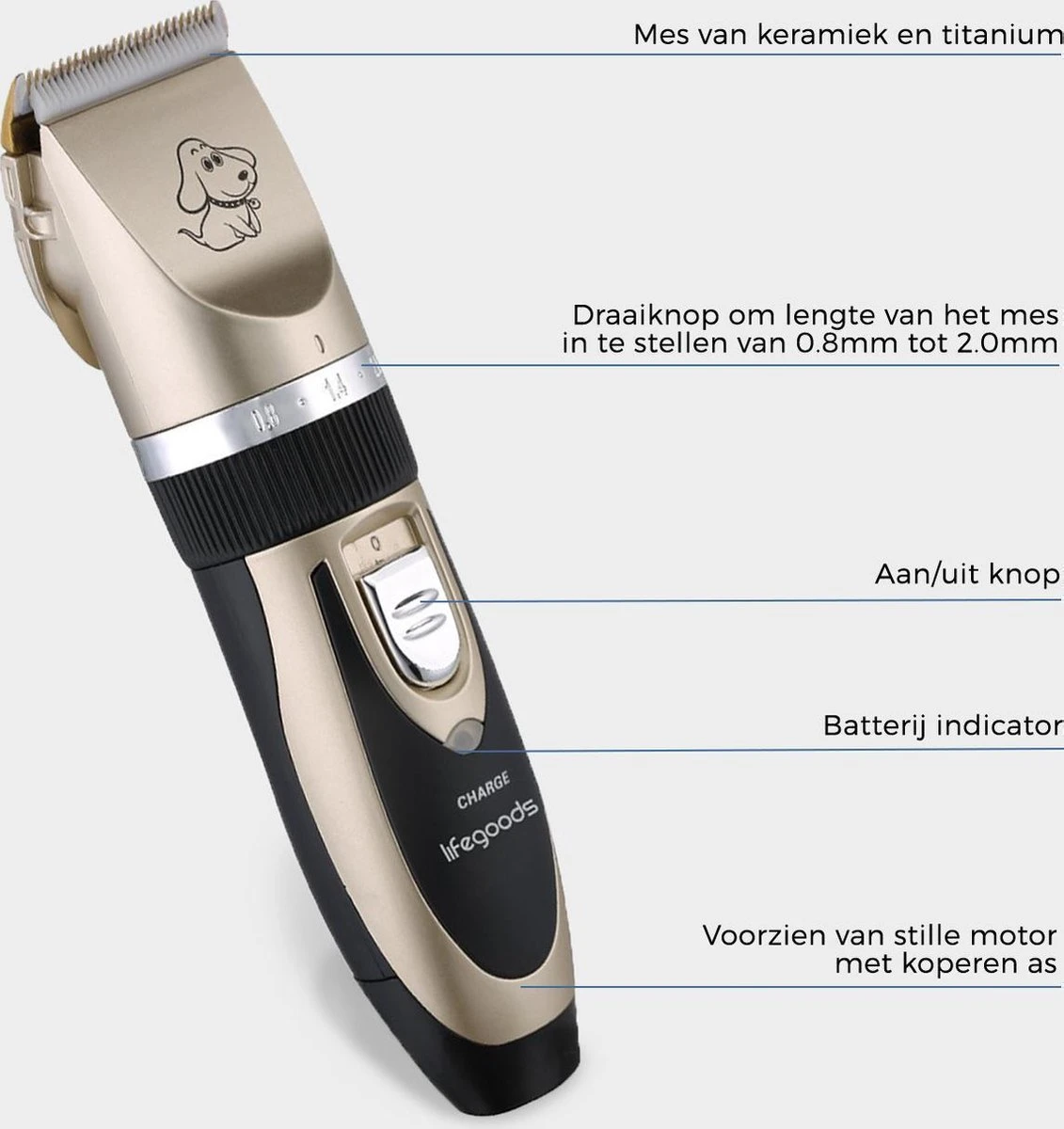LifeGoods Hondentondeuse – Voor Katten En Honden – Complete Set – 5 Standen – Draadloos – Oplaadbaar – Goud/Zwart