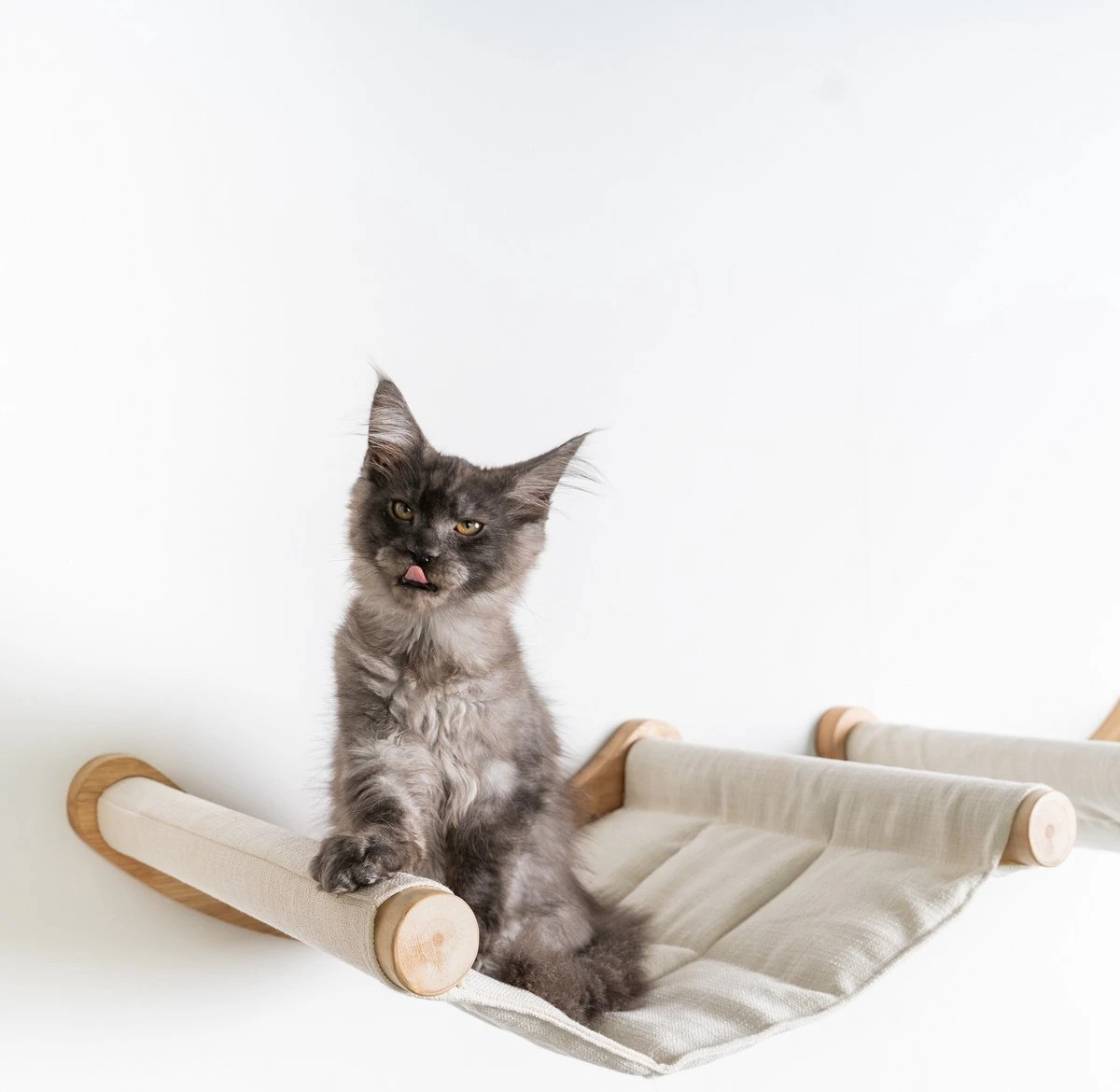 RHRQuality Wandmeubel Wandmontage Klimmuur Kat 53 X 43cm Luxe Hangmat XXL Creme Klim Wand Muur Krabpaal Katten Muurbevestiging